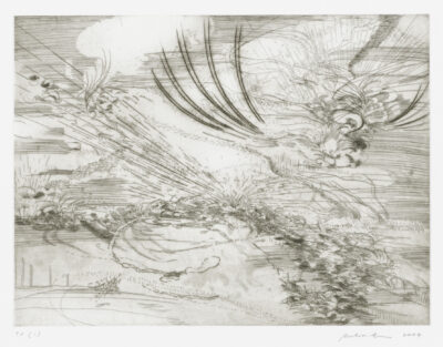 Migration, a fundamental aspect of human history, has shaped societies and cultures across the globe for thousands of years. For painter and printmaker Julie Mehretu (born 1970), migration is a key theme in her portfolio, or series, Landscape Allegories.
