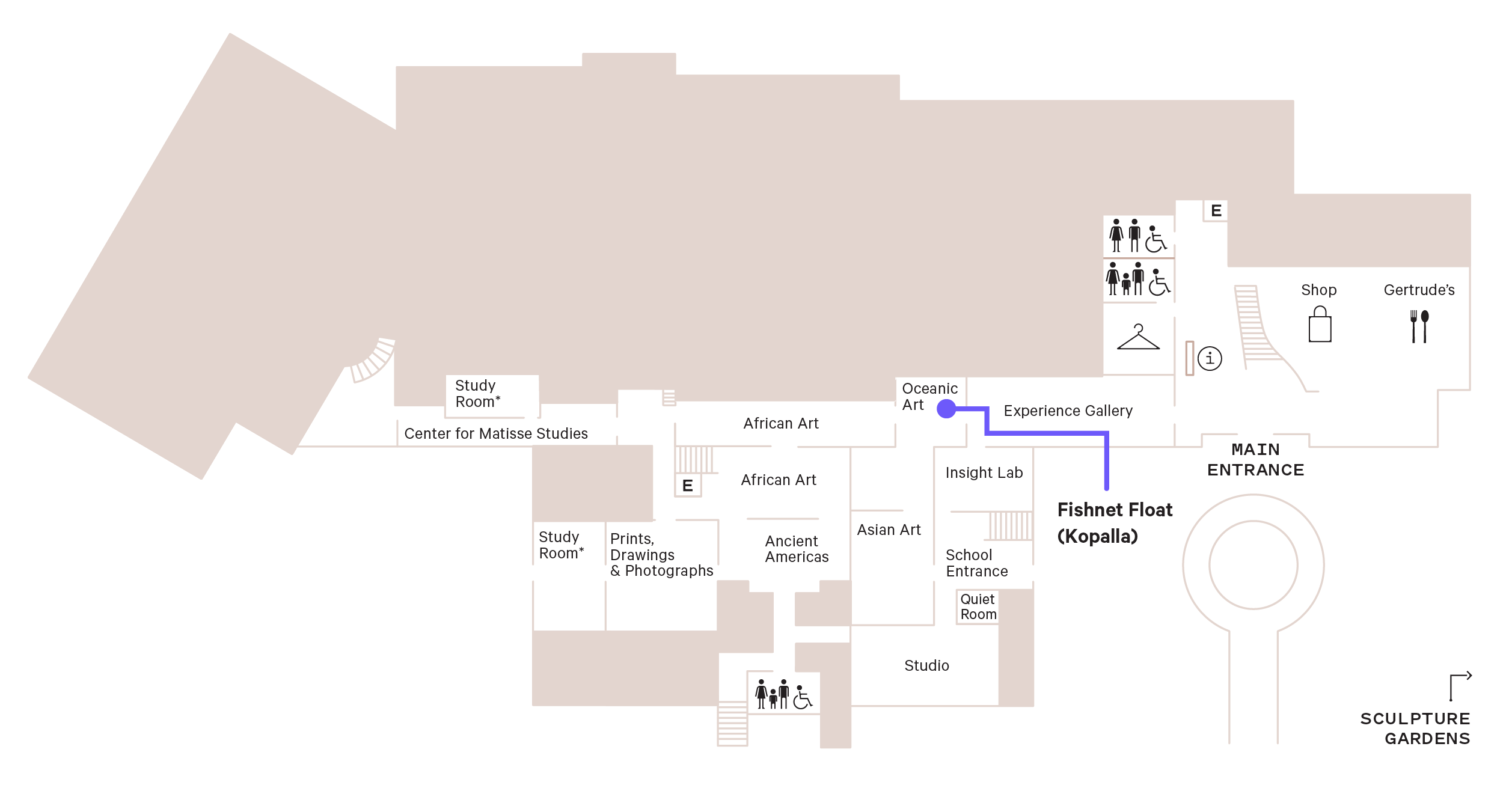 Although Solomon Islands artists created these floats to help fishers keep their nets open, they also beautifully demonstrate the intimate relationship Oceanic societies had with the sea. In the 1890s, Solomon Islanders described these objects using the word debbleum, a term used to identify objects that interacted with the spirit beings who lived in the natural world.