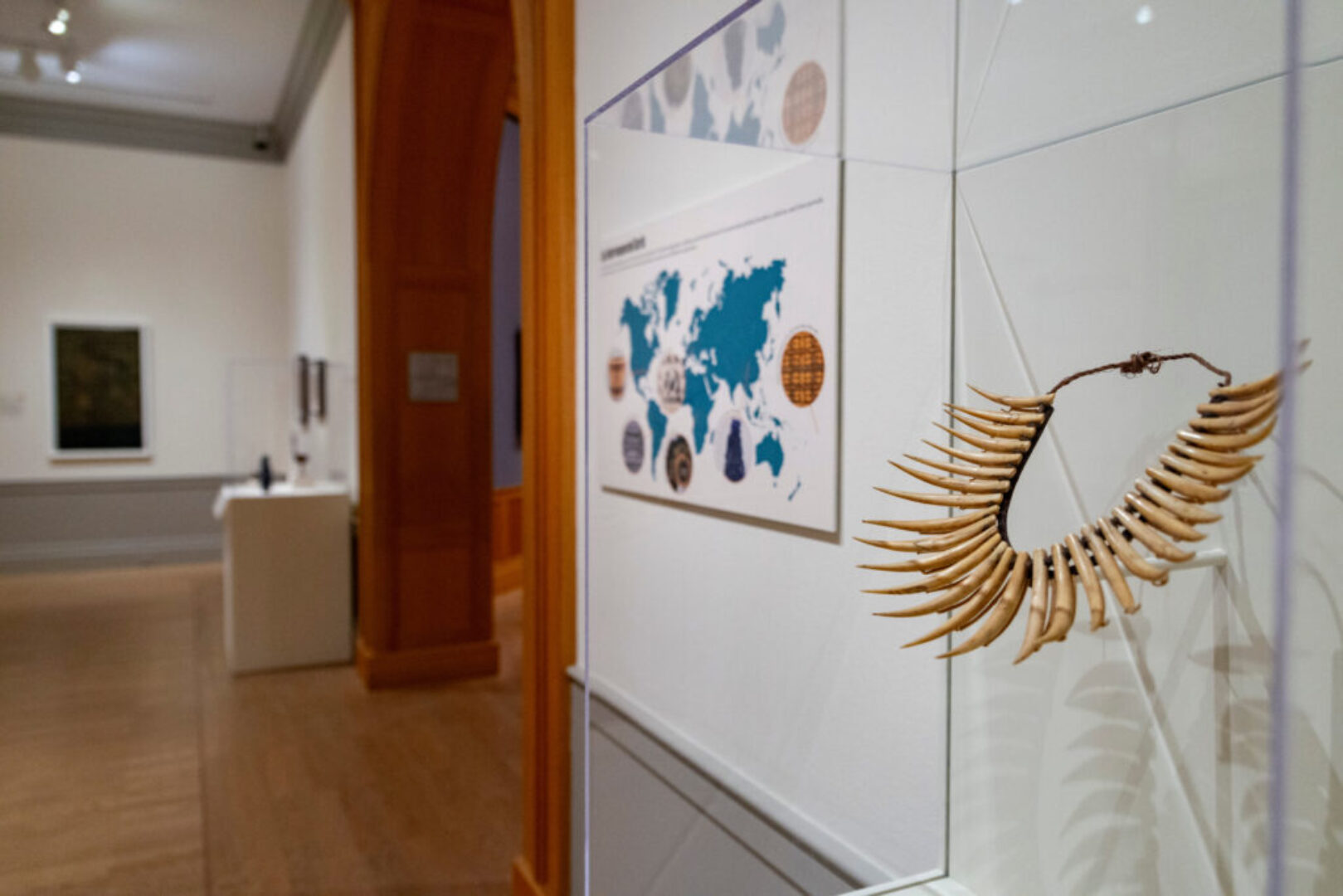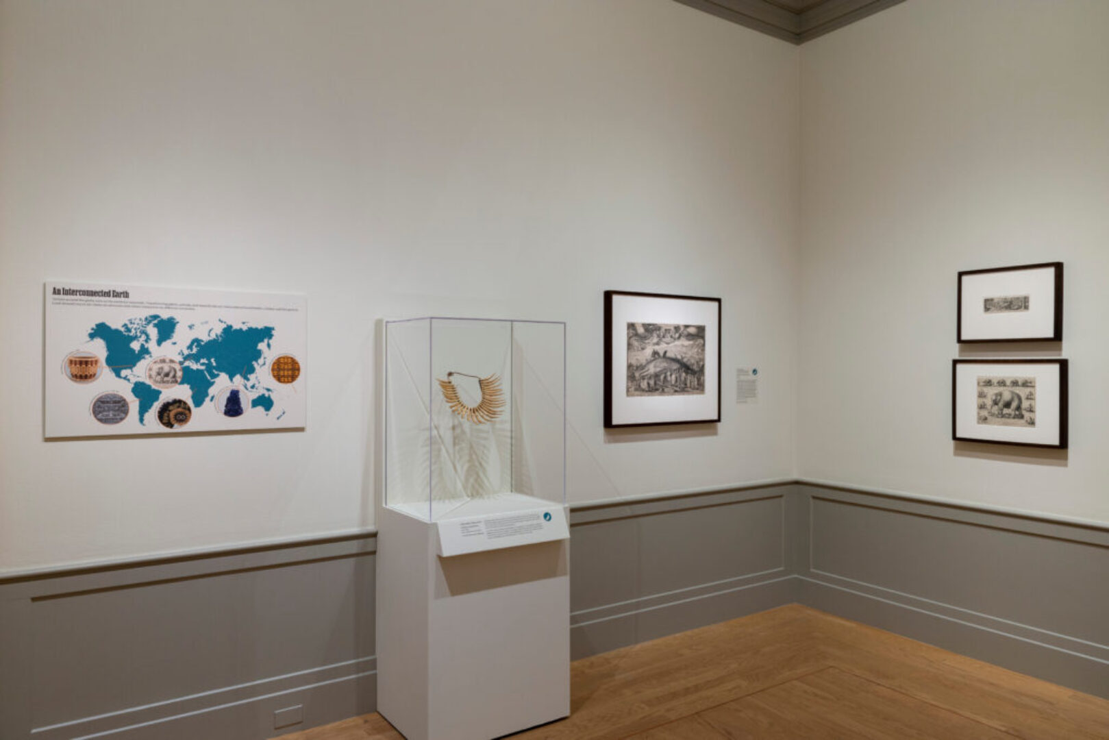 The exhibition features approximately 20 objects from cultures around the world spanning the 14th through 21st centuries. This includes works produced through a communal relationship with nature as well as artworks created by the extraction of materials for industry, leisure, and even explicit domination over nature.