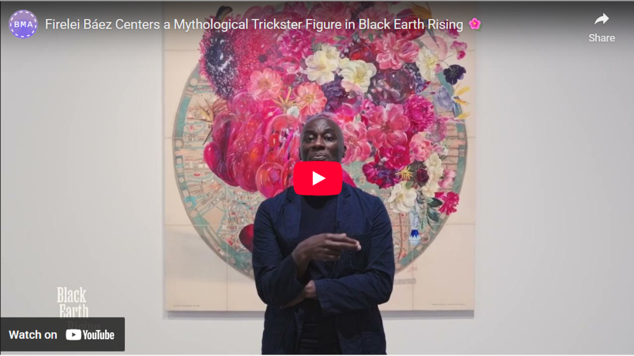 The two paintings by artist Firelei Báez on view in Black Earth Rising center the ciguapa, a mythological female trickster figure from Dominican folklore. Get an up-close look as guest curator Ekow Eshun tells us more!