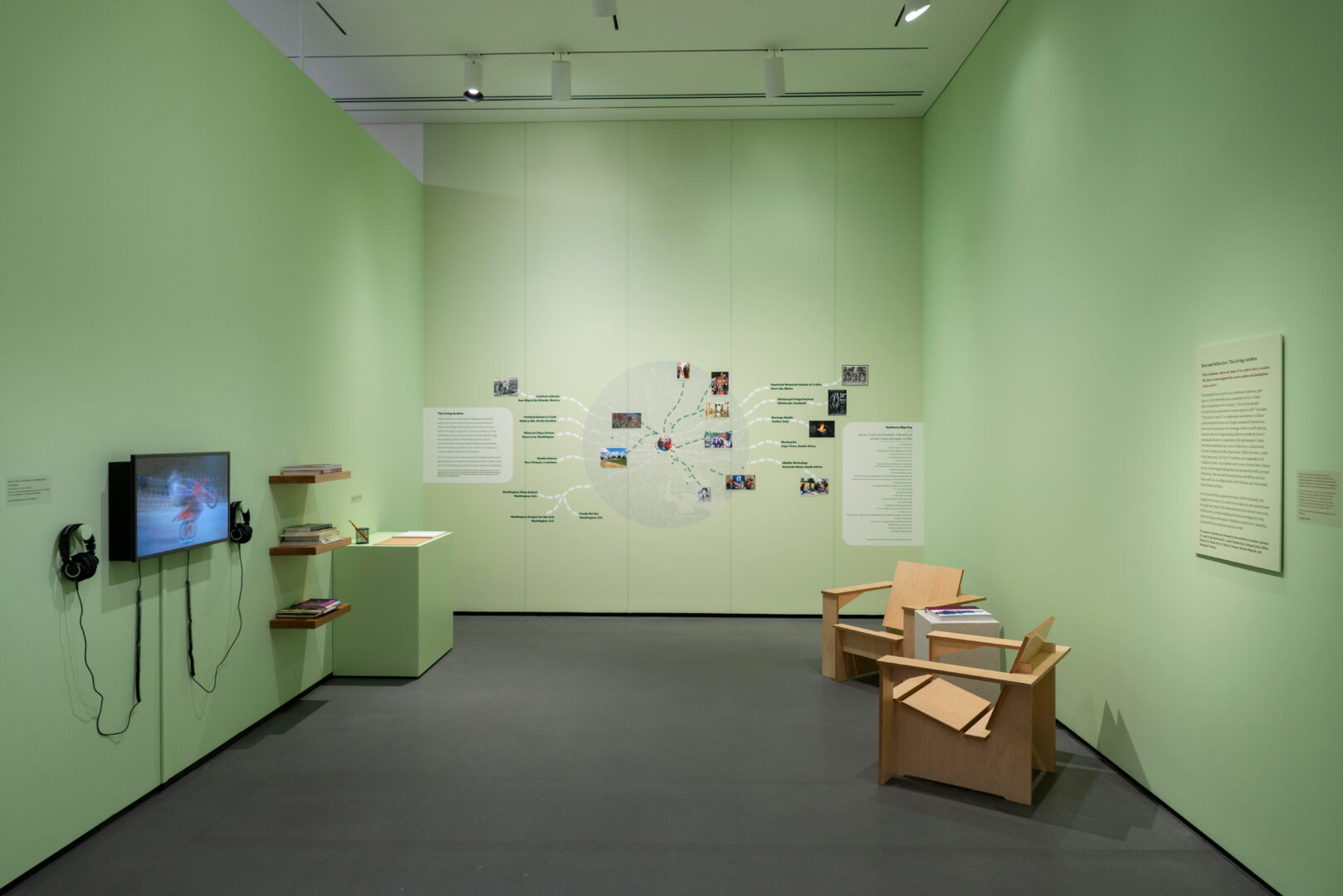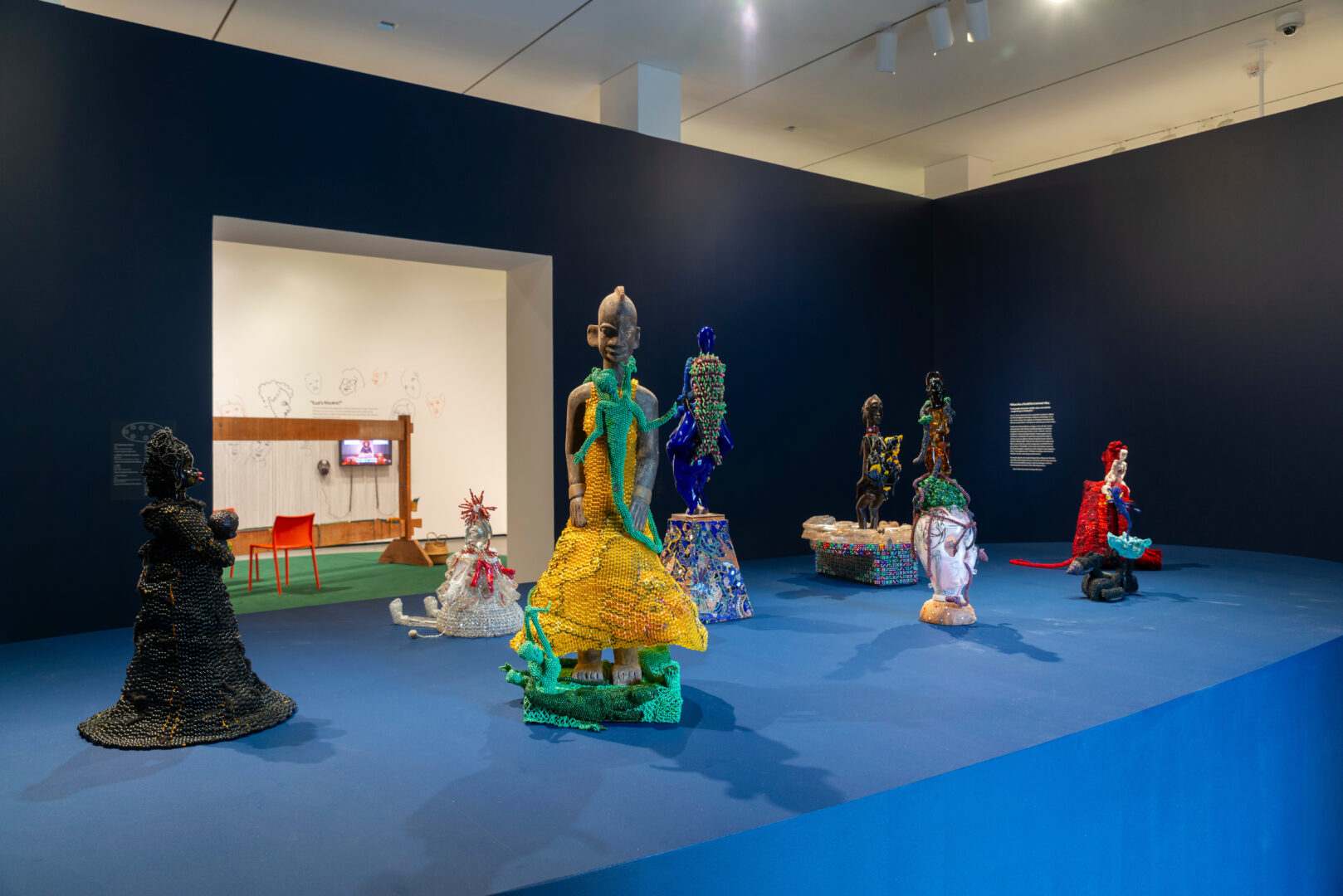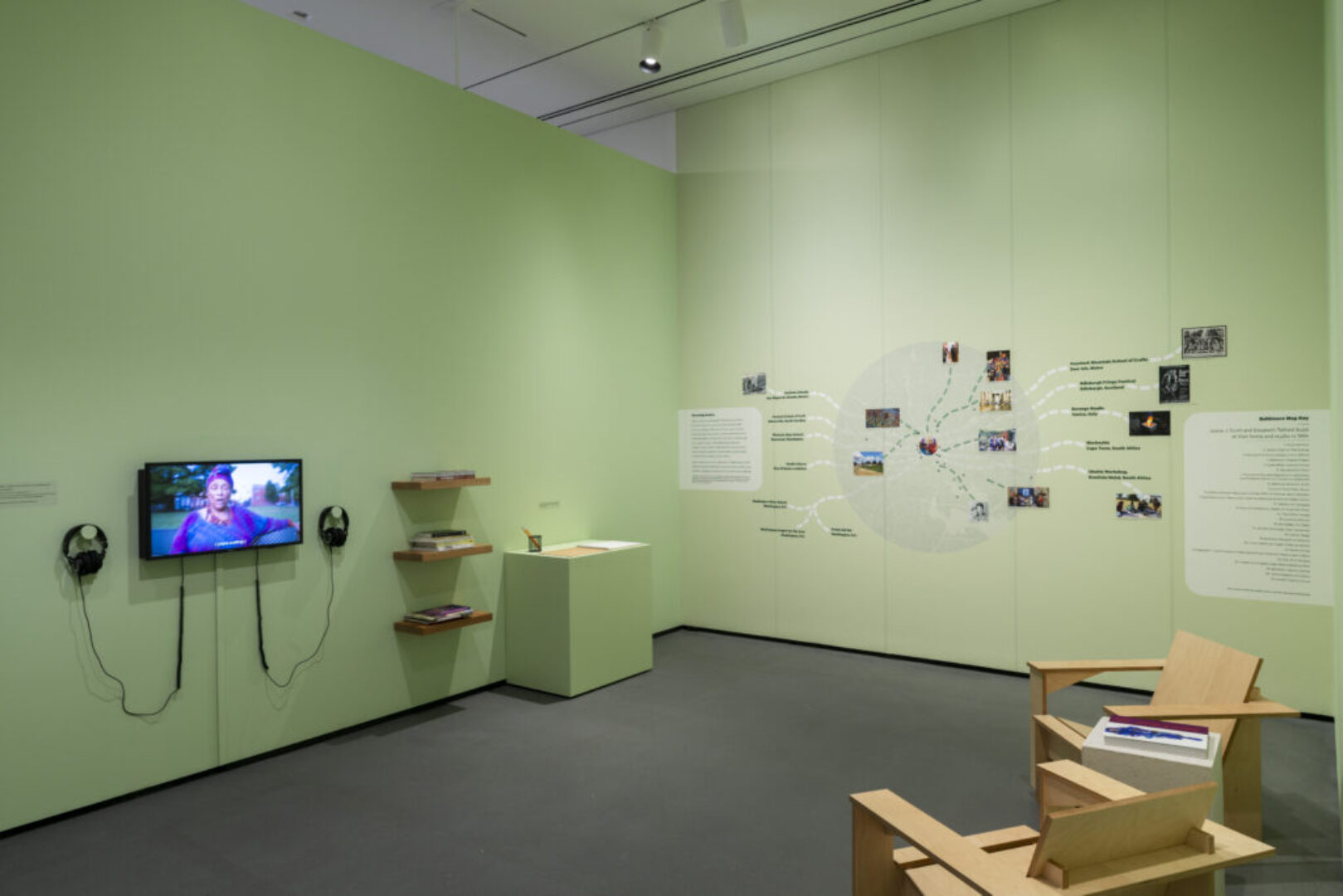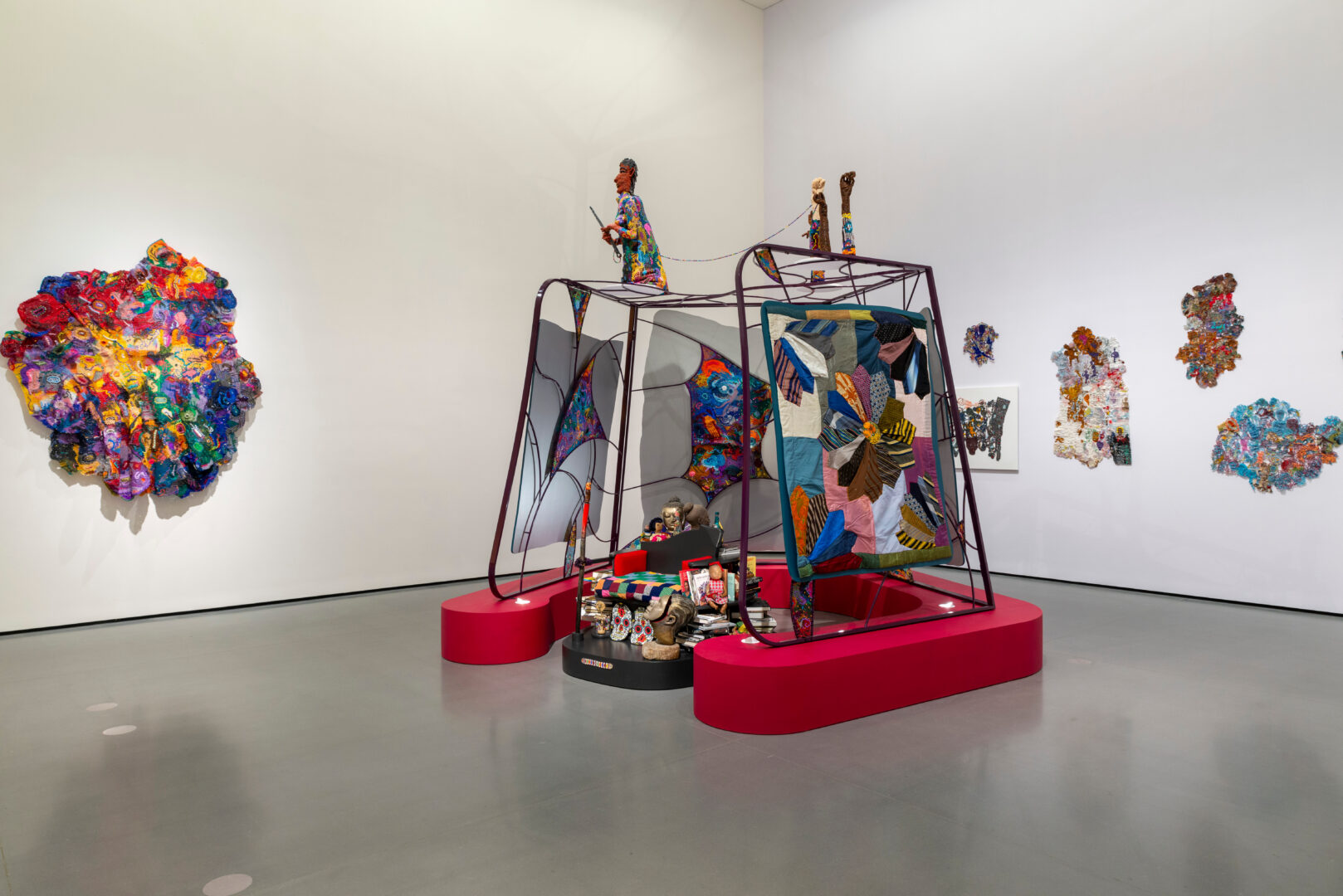 The exhibition also features a participatory weaving and storytelling environment, conceived by the artist as a hub for structured and informal programming. An expansive scholarly catalog accompanies the exhibition.