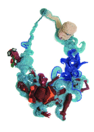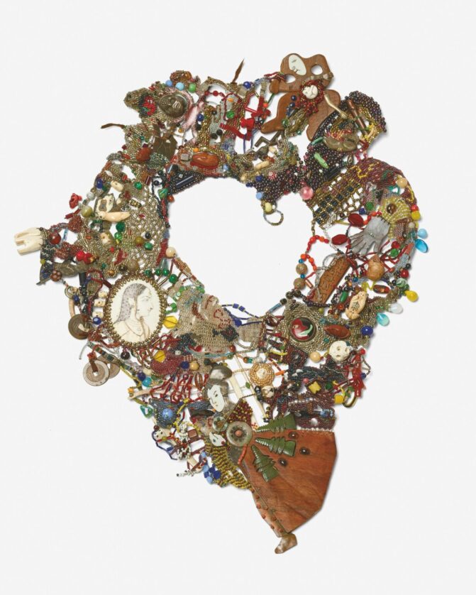 Born in Baltimore in 1948, Scott grapples with profound social, historical, racial, economic, and personal challenges that concern society at large in dazzling beadwork, sculpture, textiles, jewelry, printmaking, and performance. For five decades, she has upended hierarchies of art and craft, insisting that artistic expression is that “extra inch of life” that nourishes the soul even in the most challenging circumstances. Best known for her virtuosic use of beads and glass, Joyce J. Scott’s works across all media beguile viewers with beauty and humor while confronting racism, sexism, ecological devastation, and complex family dynamics.