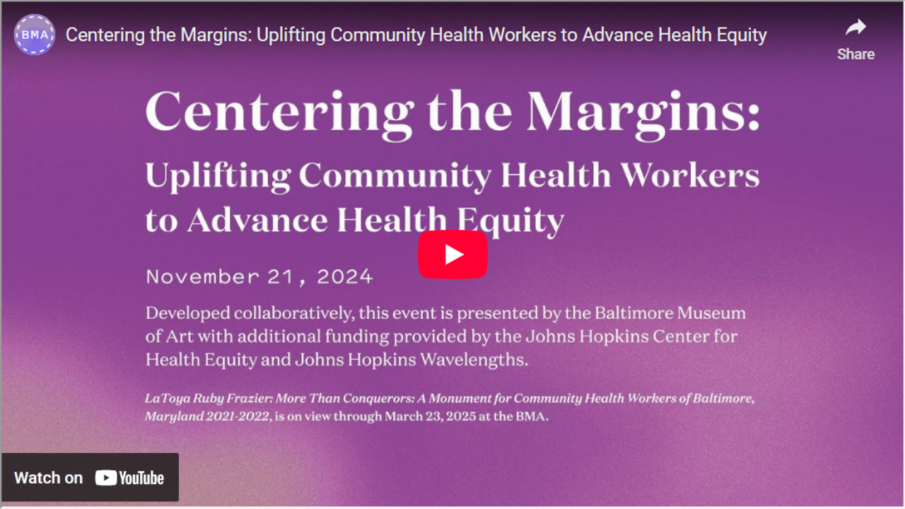 Watch a panel discussion that speaks to the role of community engaged research in the new exhibition LaToya Ruby Frazier: More Than Conquerors: A Monument for Community Health Workers of Baltimore, Maryland 2021-2022, on view November 3, 2024—March 23, 2025 at the Baltimore Museum of Art.