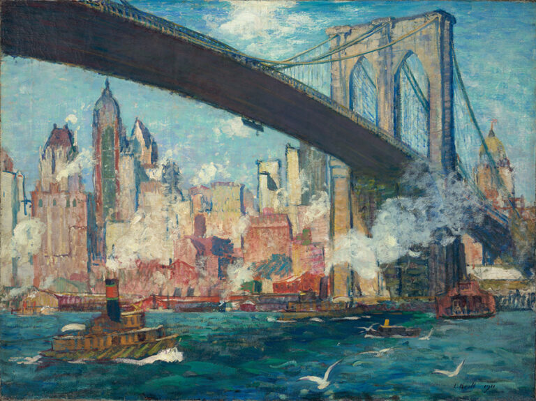 Among the exhibition’s highlights are more than 20 works by John Sloan, a leading Ashcan School artist and former newspaper illustrator whose masterful compositions reveal both the spectacle and social complexity of urban life. Other standout works include Guy Wiggins’s large‑scale Impressionist streetscape of New York City, Midtown Looking Down Fifth Avenue (mid‑20th century); John Singer Sargent’s striking charcoal portrait Miss Enid Morse (1911); and Provincetown (1916), Marguerite Zorach’s bold Cubist interpretation of the Massachusetts harbor rendered in prismatic color and dynamic form. The exhibition also reflects the transnational and multi-cultural dimensions of American modernism, featuring works by Native American, immigrant, and European artists whose perspectives shaped—and challenged—dominant narratives of American art.